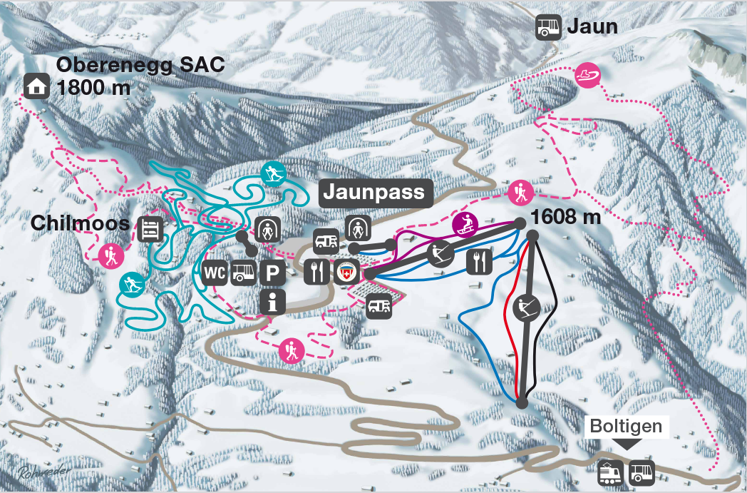 Den Gästen des Camping Jaunpass stehen über 40 Parzellen zur Verfügung, die sich harmonisch in die umgebende Natur einfügen. Sanitäre Anlagen, Stromanschlüsse, Waschräume und WLAN zählen zu den Annehmlichkeiten. Mit einer naheliegenden Gaststätte und einem kleinen Einkaufsladen bietet das Camping Jaunpass zudem die Möglichkeit, sich mit frischen Lebensmitteln aus der Region zu versorgen. Die ruhige Atmosphäre auf dem Campingplatz wird durch den großen Spielplatz für die jungen Besucher nicht getrübt. Zu den weiteren Freizeitaktivitäten auf dem Gelände gehören Tischtennis, Boccia, Fußball, Darts und verschiedene Brettspiele. Natürlich stehen aber hauptsächlich die vielen Naturausflugsziele rund um das Grundstück im Vordergrund. In der warmen Jahreszeit zählen die vielen Wanderrouten der Umgebung zu den Höhepunkten. Sowohl das gut 2.000m hohe Bäderhorn als auch der knapp 2.050m hohe Gipfel des Hundsrügg lassen sich vom Camping Jaunpass aus in einer entspannten Wanderung erreichen. Bei Kindern steht zudem der Erlebnisweg Bruchmandli hoch im Kurs. Die markanten Felsformationen der ca. 13km entfernten Gastlosen gelten als wahres Paradies für Kletterer. Während der Wintermonate besticht der Platz durch die unmittelbare Nähe zu einem familienfreundlichen Skigebiet, der nächste Skilift liegt nur 100m entfernt. Langlaufen und Wanderungen mit Schneeschuhen stellen weitere Winteraktivitäten dar, die vom Camping Jaunpass aus möglich sind.