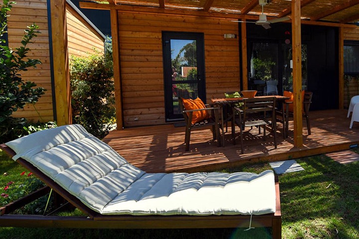 Zwischen Bergen, Meer und Palmen sorgt sich dieser Campingplatz neben den Gästen besonders um die Umwelt. Lass den Camper ausnahmsweise zu Hause und entscheide dich stattdessen für einen Holzbungalow mit Frühstück, Halb- oder Vollpension. Genieße die wohltuende Kraft des Wassers im beheizten Hallenbad mit Whirlpool oder entdecke die heilende Wirkung der Schlammbänke von Mar Menor.