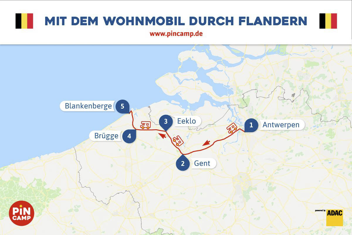 In ihrer Blütezeit kamen hier Kaufleute in die Städte, um Handel zu treiben; heute kommen Touristen aus aller Herren Länder: Die Rede ist vom deutschen Nachbarland Belgien. Etwas mehr als elf Millionen Menschen leben hier: Ein Drittel sind Wallonen und zwei Drittel Flamen, die in der nördlichen Landeshälfte leben. Hier wird niederländisch und in dem wallonischen Teil französisch gesprochen. Beide Sprachen sind die offiziellen Amtssprachen, die auch in der Hauptstadt Brüssel gesprochen werden. Über die Zweisprachlichkeit hinaus hat Belgien noch eine Besonderheit zu bieten, die das Land von anderen europäischen Ländern abgrenzt. Der Urbanisierungsgrad ist sehr hoch und so leben die Belgier überwiegend in prächtigen Städte, die es auf der Campingreise zu entdecken gilt; insbesondere in Flandern. So beginnt die Reise in Antwerpen.
