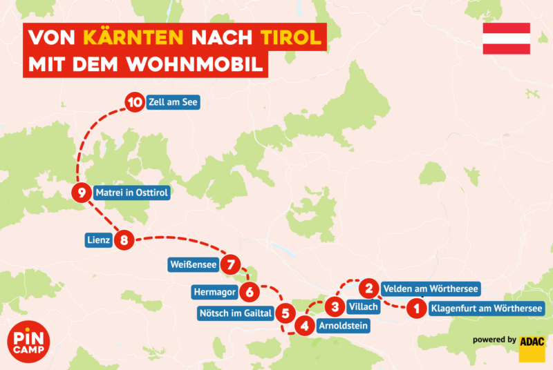 | Route | Klagenfurt am Wörthersee - Velden am Wörthersee – Villach – Arnoldstein - Nötsch im Gailtal – Hermagor – Weißensee – Lienz - Matrei in Osttirol - Zell am See |