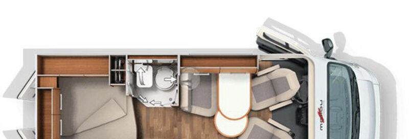 Vielleicht ziehst du eher eine praktische, raumsparende Variante vor, weil in deinem Wohnmobil höchstens zwei Personen reisen und vor Ort nicht viel Zeit im Fahrzeug verbringen. Ein bequemes Bett mag dir wichtiger sein. Bei deiner Odyssee durch Messen und über die Ausstellungsflächen der Wohnmobilhändler begegnen dir einige Raumaufteilungen besonders häufig. Tatsächlich gibt es auch bei der Raumaufteilung in Wohnmobilen immer wieder neue Trends. Nach der Vorreiterrolle der kleinen Sitzgruppen haben sich die Hersteller sehr viel einfallen lassen und kombinieren Rundsitzgruppen mit überraschenden Bett-Lösungen.